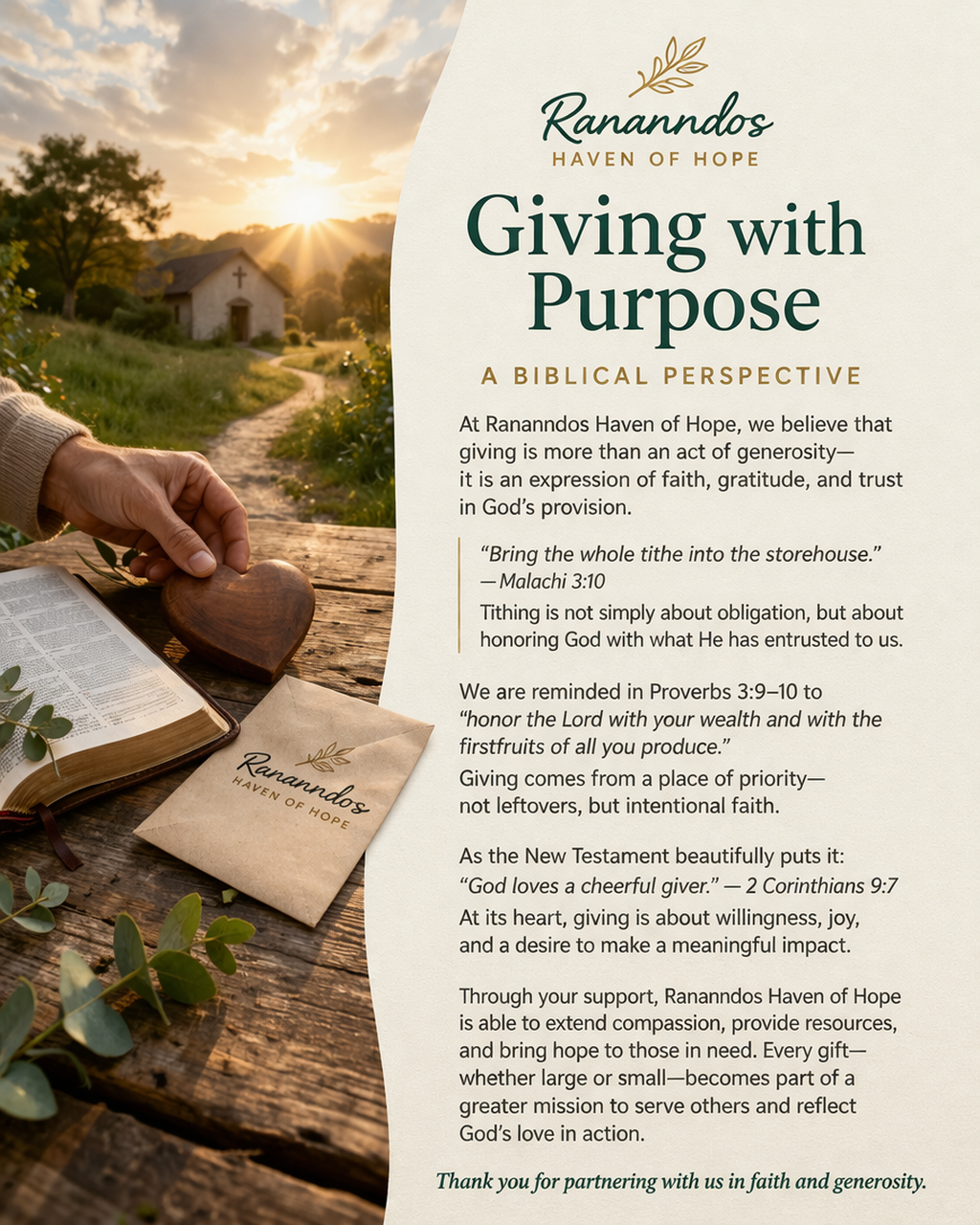 Rannando’s Haven of Hope is a non-profit organization that supports organizations that spread the good news of Jesus Christ. Serving in our local communities and supporting ministries internationally, Haven of Hope shares God’s love to serve those in need.